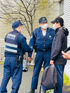 不審者の来局を警察へ通報する一連の対応を行いました。