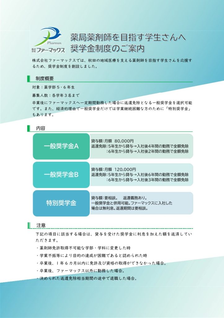 株式会社ファーマックスでの奨学金制度をご紹介します。