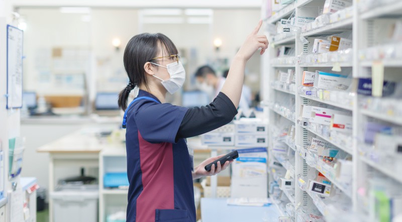 最近は、受付、案内係、入力、ピッキングなどの業務を行っています。薬局待合室の案内係も担当し、待っている患者さんに気を配り、「バス時間は大丈夫ですか。」などの声掛けをしています。このような声掛けをすることで患者さんとより多くのコミュニケーションをとることができ、やりがいを感じる場面が増えました。